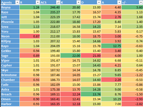 After watching the recent valorant tournament, I was interested in finding the stats for each agent played. Unfortunately these stats were not compiled in one location, so I decided to get all of the data and compile it myself.